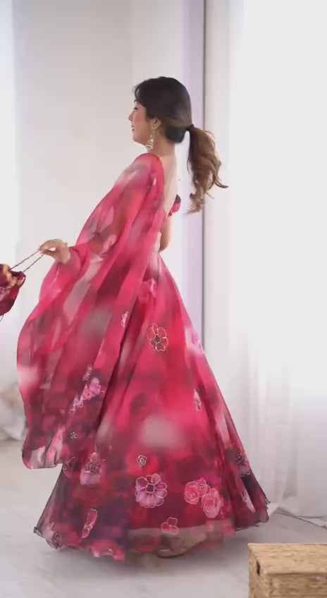 Elegant Organza Lehenga Set with Digital Print & Zari Work