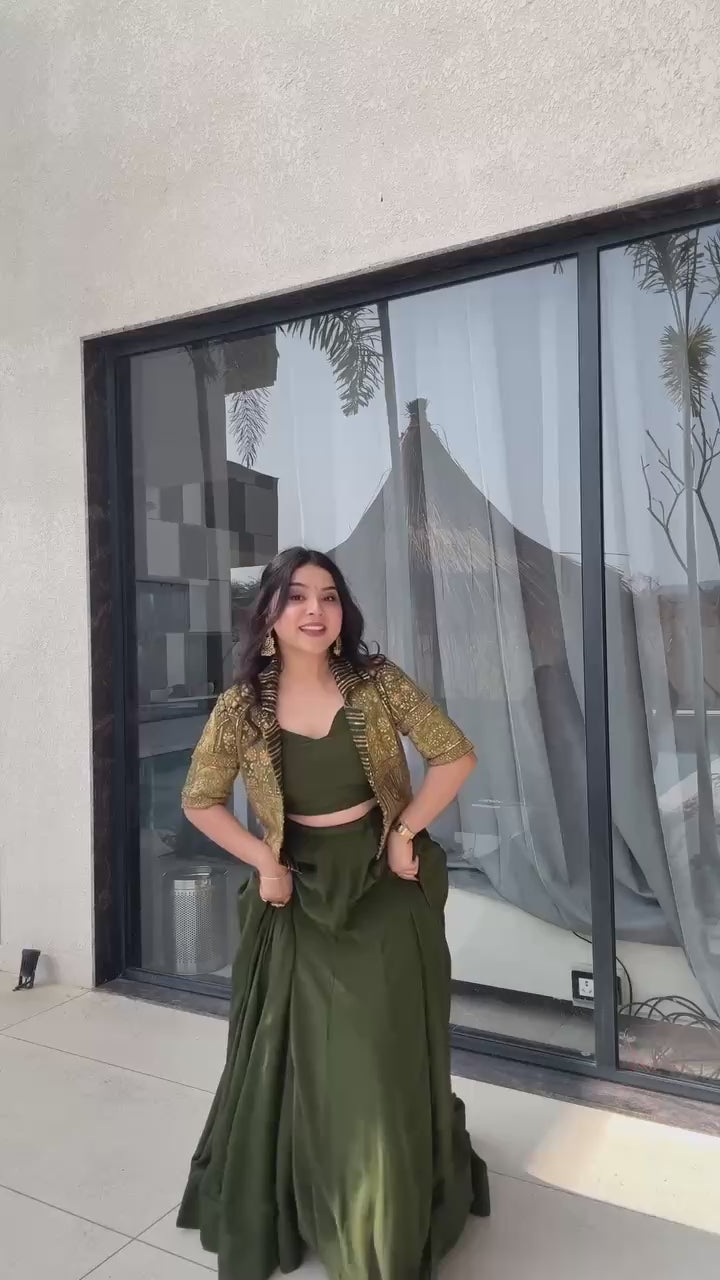 Designer 3 Pis Party Wear Look lehenga Koti Collection Mahendi Colour