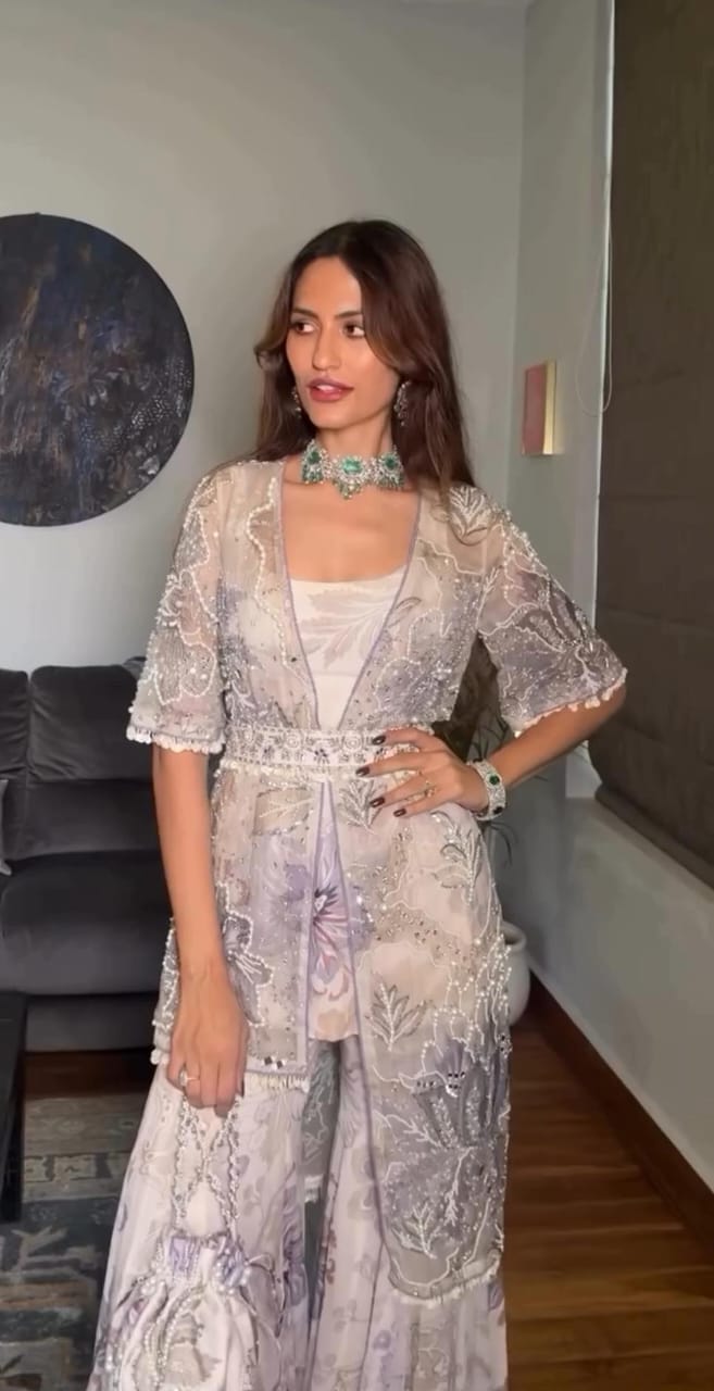 SHARARA: Georgette fabric with floral digital print work (Fully stitched)