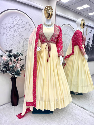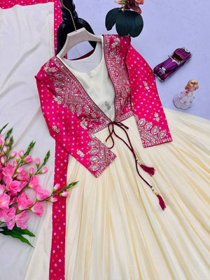 *Work* : Embroidery Sequins & Codding Work With Bandhni Prints