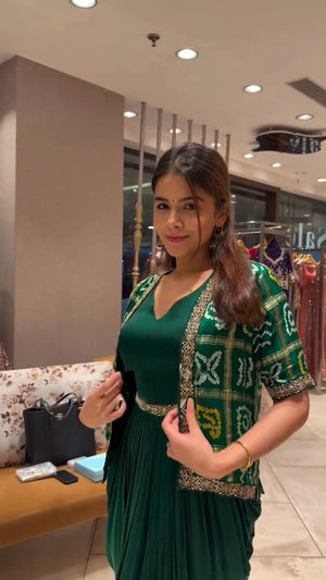 Exclusive One Piece Cowl Dress with Shrug – Printed Chinon & Sequin Work