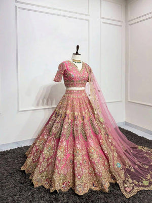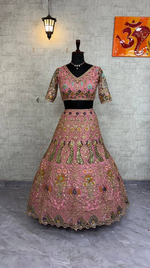 Heavy Butterfly Net Embroidery Sequence Work Lehenga with Blouse and Dupatta