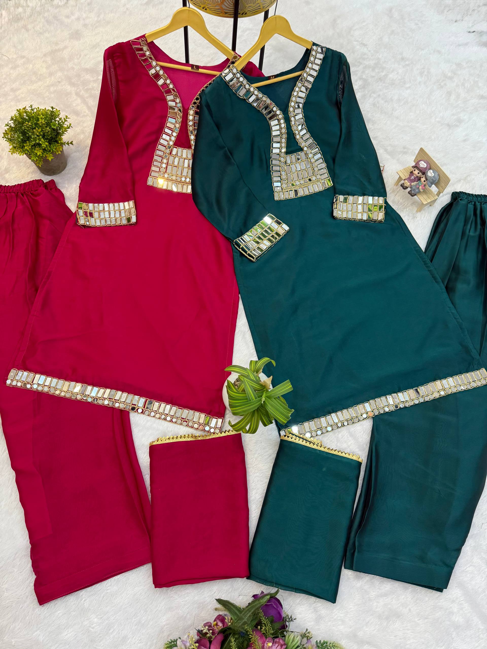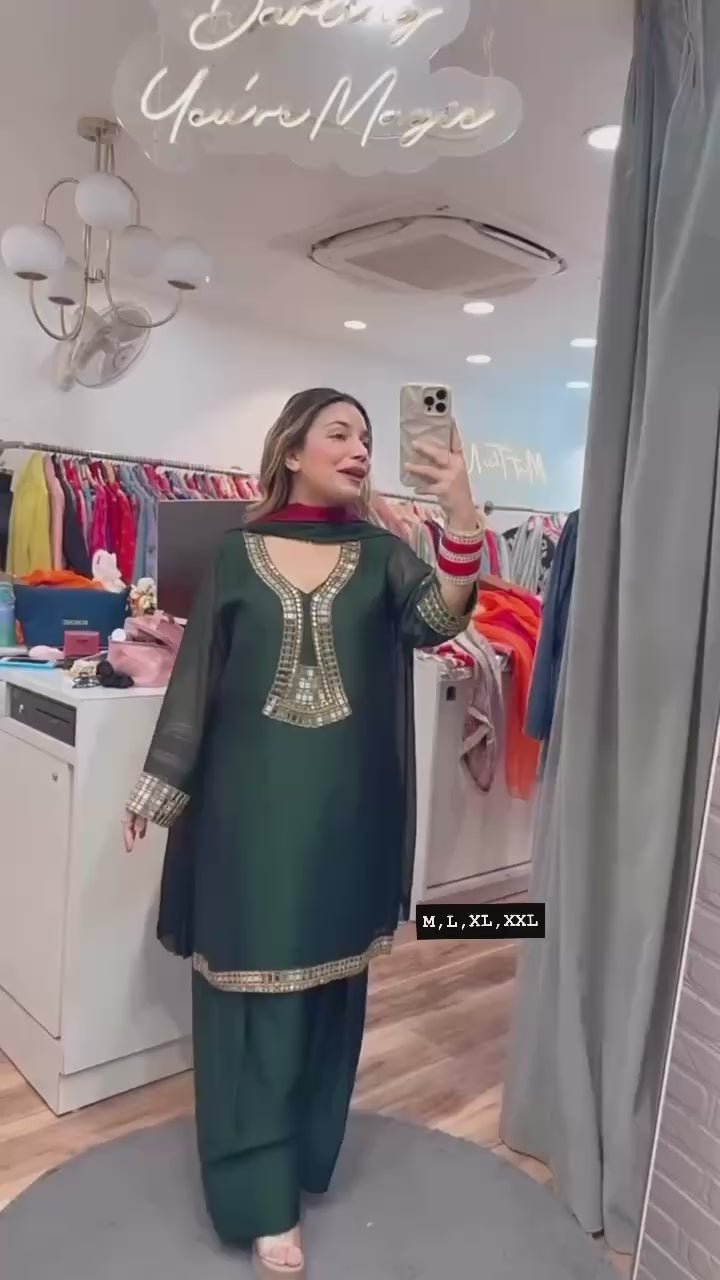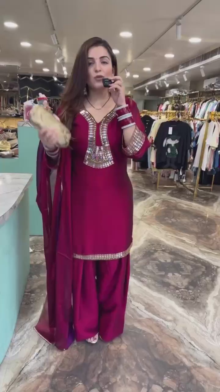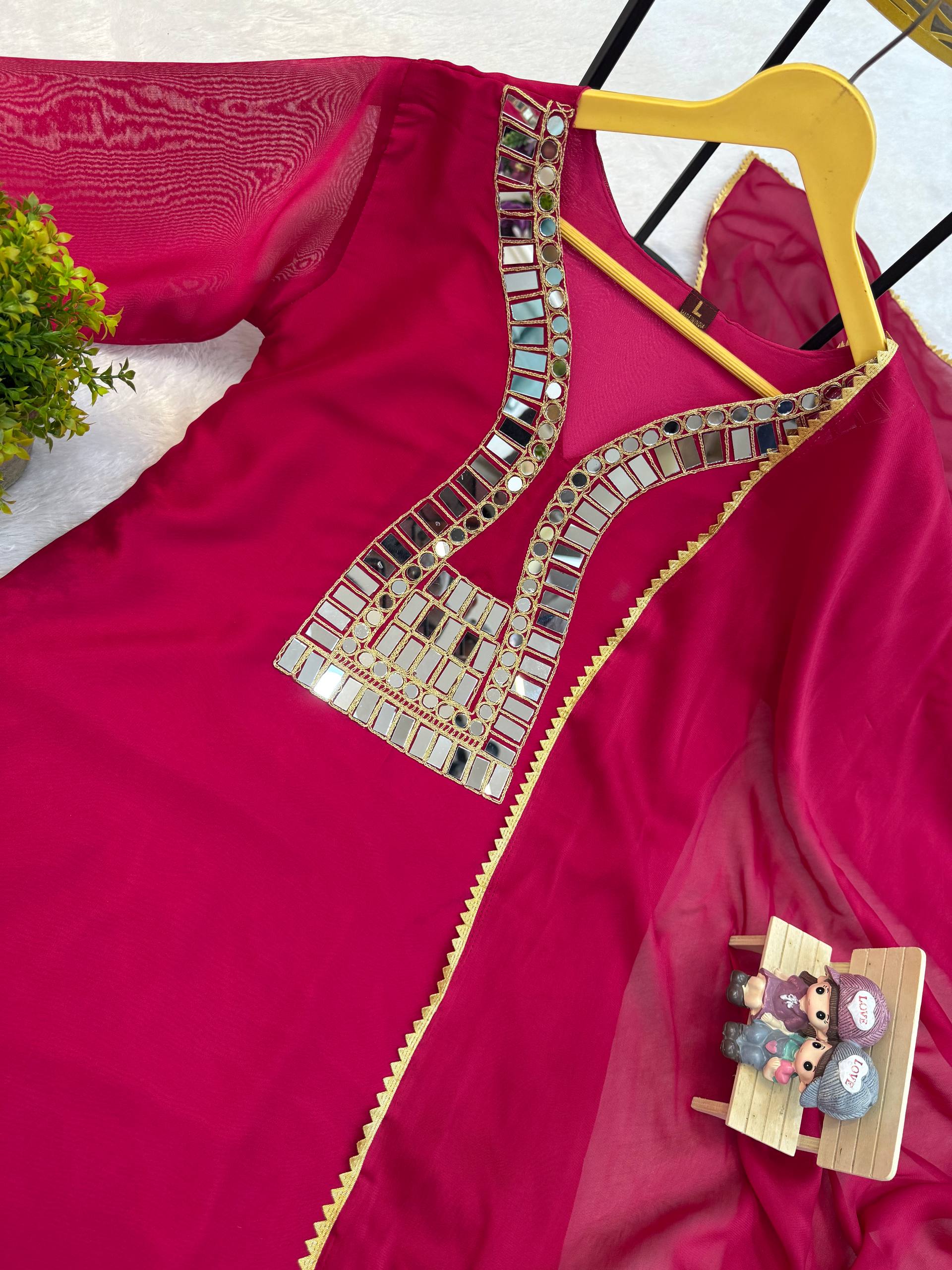 WE ARE LAUNCHING NEW SUPERHIT TRENDING KURTI, PENT & DUPATTA ON RANGOLI FABRIC WITH EMBROIDERY AND REAL MIRROR HAND WORK