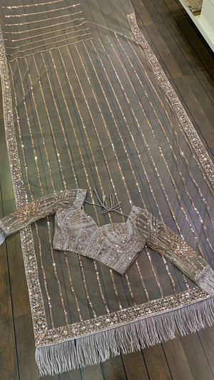 Net blouse with sequins, dori and zari work all over front and back (unstitch)