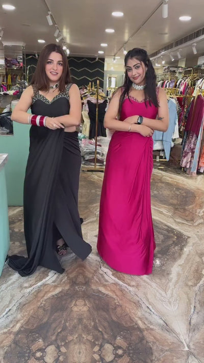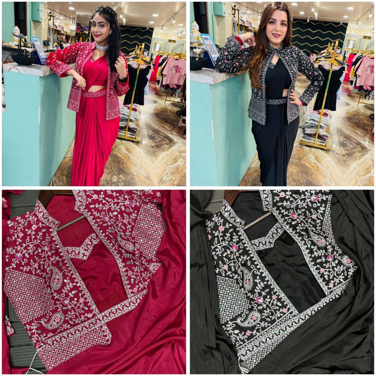 New Super Trending Embroidery Sequence work ready to wear saree with full koti