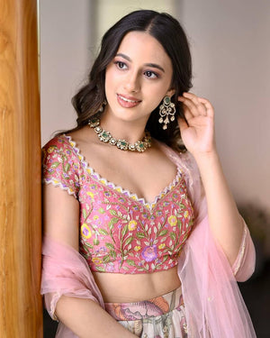 Experience elegance and craftsmanship with this beautifully designed lehenga choli set, created with attention to detail and premium layering. The lehenga features a graceful 3.5-meter flare with multiple layers, ensuring a rich fall and stunning twirl effect—perfect for weddings, festive occasions, and special celebrations.