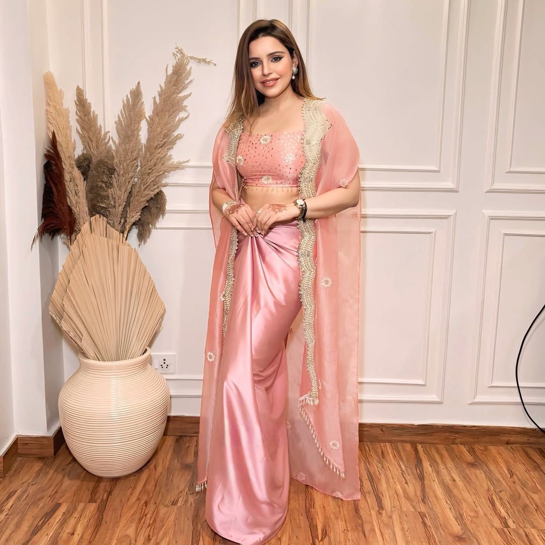 TUBE BLOUSE : French Crep With Sequin Embroidery and Silver Moti Lace.