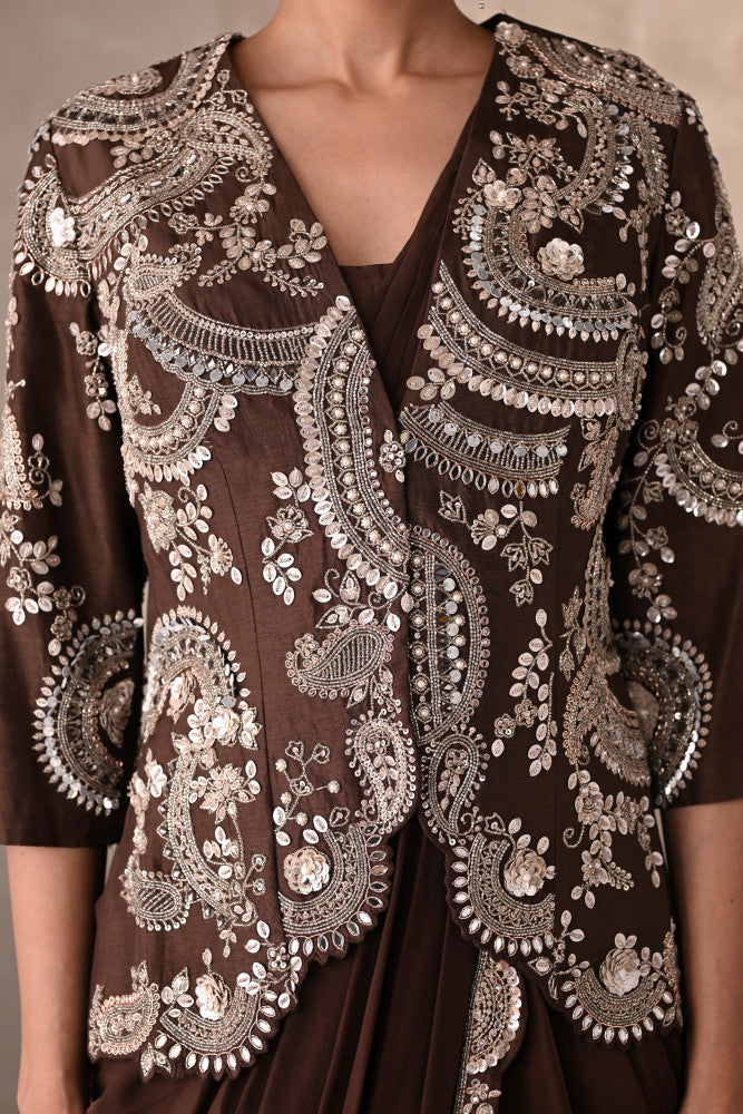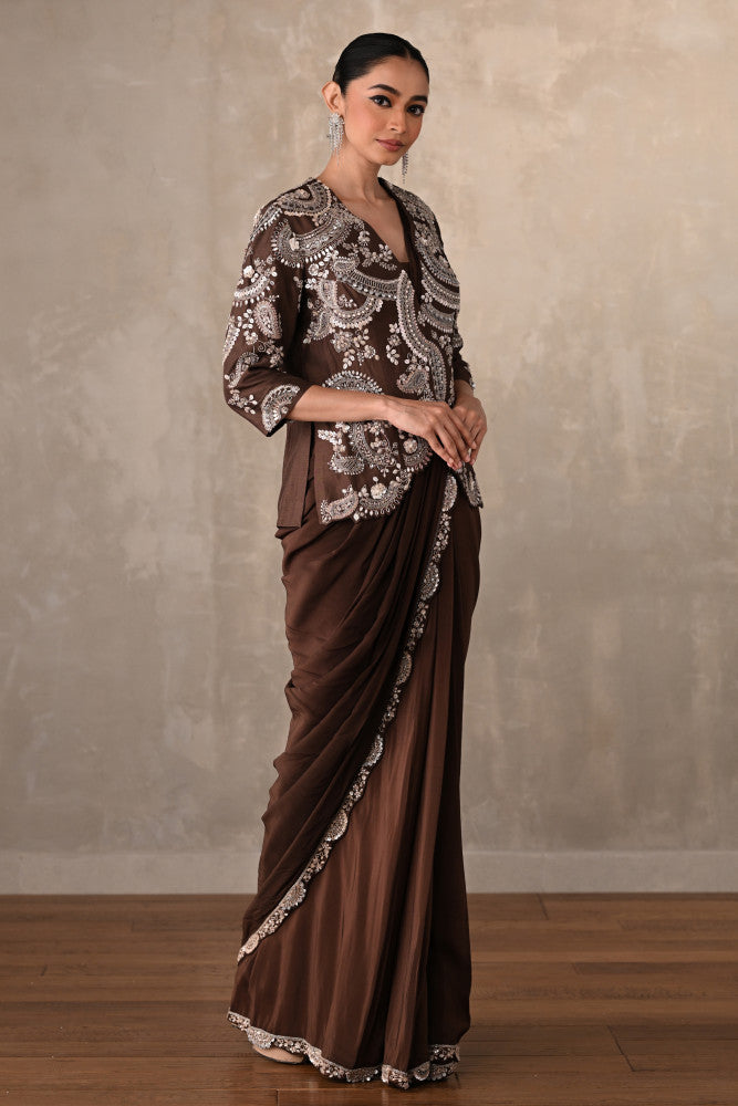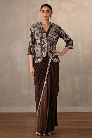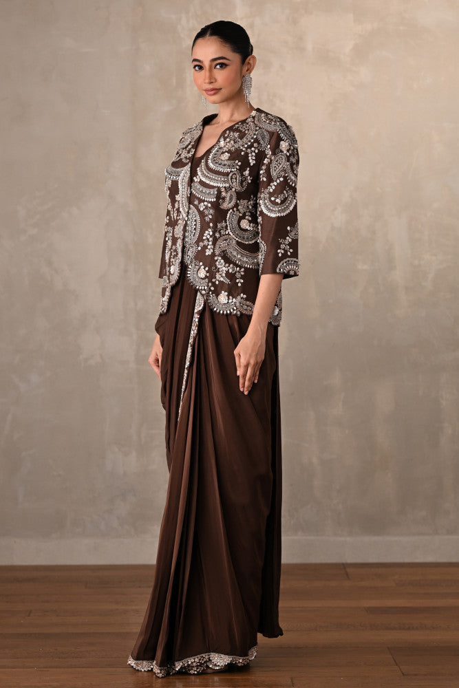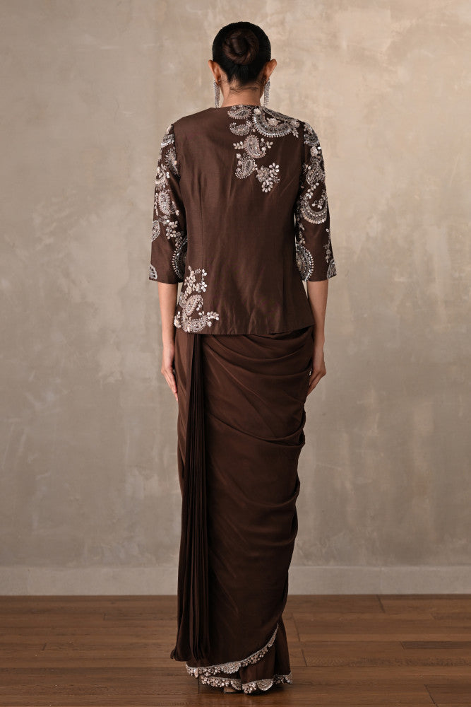 Smoky Crepe Drape Saree With Embroidered Jacket