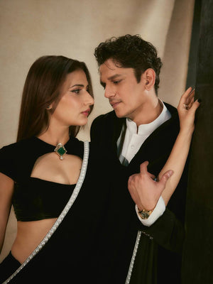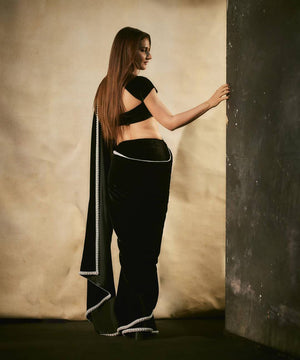 Presenting the premium Black Beauty Winter Saree by RV Creation — crafted from luxurious Viscose Velvet for a rich, warm, and elegant winter look. This designer saree features a solid velvet texture enhanced with a fancy pearl lace border, making it perfect for parties, weddings, and festive occasions.